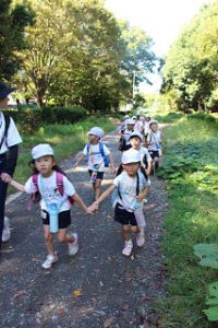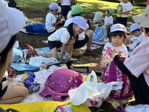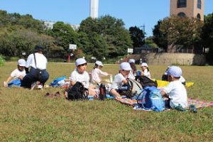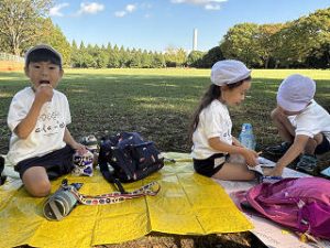 お腹が空いていたのか、芝生を見てあそこでご飯食べたいね〜とごはんの場所を決めるお友達もいました!