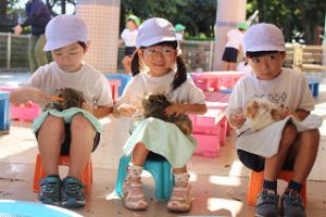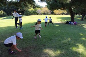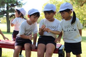 芝生には虫がたくさん!ここにもいる!あそこにもいる!と見つけて、捕まえて戦わせたりと、それぞれ好きな遊びを楽しんでいました♪