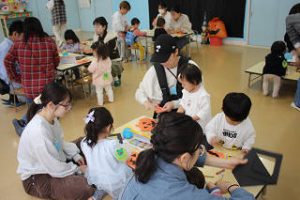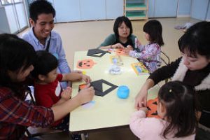 ママやパパたちと一緒に作ります♪のりの感触が大好きな子、苦手な子それぞれに合わせながら取り組んでいきました♪