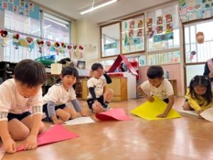 今週作っていた仮装セットにカバンを仲間入りし園内探検をしました!