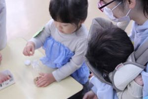 12月はみんなでマラカスを作って♪おもちゃのチャチャチャの歌を歌いながら楽器遊びを楽しみました!マラカスの容器にどんぐりをいっぱい詰め込んでいたお友達も♡