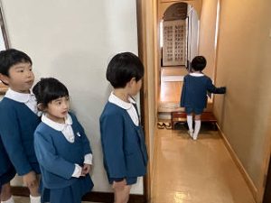 待ちに待ったお茶会!前日の園長先生のお話を思い出しながらお茶室に入る前にもう一度ルールやマナーを確認しました。