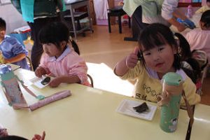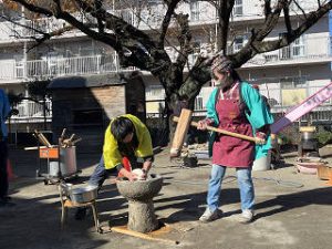みんなもお餅をペタペタ頑張りました^^