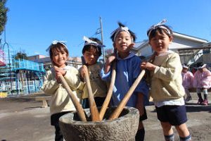 今日はみんなが楽しみにしていたおもちつき!